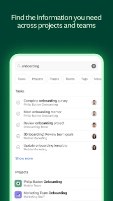 Asana ce makullin sarrafa ayyukanka da na tawagarka cikin sauƙi, duk inda kuke. Ko kana kan wayar salula ko kuna aiki a kan kwamfuta, Asana tana ba ku damar kasancewa a kan gaba. Ba tare da la'akari da inda kuke ba, Asana yana tabbatar da cewa aikin tawagarku ya ci gaba ba tare da tsangwama ba, yana taimaka muku ku mai da hankali kan abin da ke da muhimmanci. Yana kawo tsari da haɗin kai ga kowace ƙungiya, yana sanya aiki mai wuya ya zama mai sauƙi.