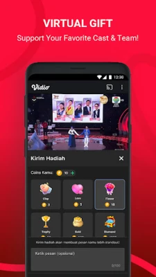 Bayan waɗannan, Vidio ya tara muku manyan fina-finai da wasan kwaikwayo daga sassa daban-daban, misali fina-finan Indonesiya kamar Rangga Cinta, wasan kwaikwayo na Sinanci irin su Love Ambition, da kuma fim ɗin Koriya mai cike da aiki, Exhuma. Ga yara kuma, akwai zaɓi na musamman na fina-finai da jerin shirye-shiryen da suka fi so a kowane lokaci kamar Minions: The Rise Of Gru, Ejen Ali The Movie 2: Misi Satria, da Nailoong vs Bombloong. Kada a manta da sabbin shirye-shiryen anime da suka shahara kamar Jujutsu Kaisen Seasons 3 da One Piece. Bugu da ƙari, ku sami damar kallon tashoshin talabijin na gida da na duniya kai tsaye, ciki har da SCTV, Indosiar, tvN, Arirang, da Aljazeera, da kuma tashoshin wasanni na musamman kamar BeIN Sports, SPOTV, da Champions TV. Har ma za ku iya bincika wasan kwaikwayo na Thailand, na Japan, kiɗa, da sauran su. Ku ji daɗin kallon komai cikin ingancin HD, tare da zaɓin fassara a harsuna daban-daban, kuma mafi mahimmanci, ba tare da tallace-tallace masu katsewa ba.