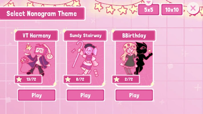 Shiga duniyar VT Nonogram - Picross Game mai ban sha'awa, inda tunani da nishaɗi suka haɗu don ƙirƙirar ƙwarewar wasa ta musamman. An tsara shi don masoyan wasannin wuyar warwarewa, wannan wasan yana kawo maka gogewar da ba ta dace ba ta hanyar haɗa zane-zanen picross masu ban sha'awa da kuma kyawawan halayen Yun Seven. Fara tafiya ta dabara don gano boyayyun hotuna, kowane mataki yana ba da sabon kalubale da damar gwada ƙwarewar warware matsaloli.